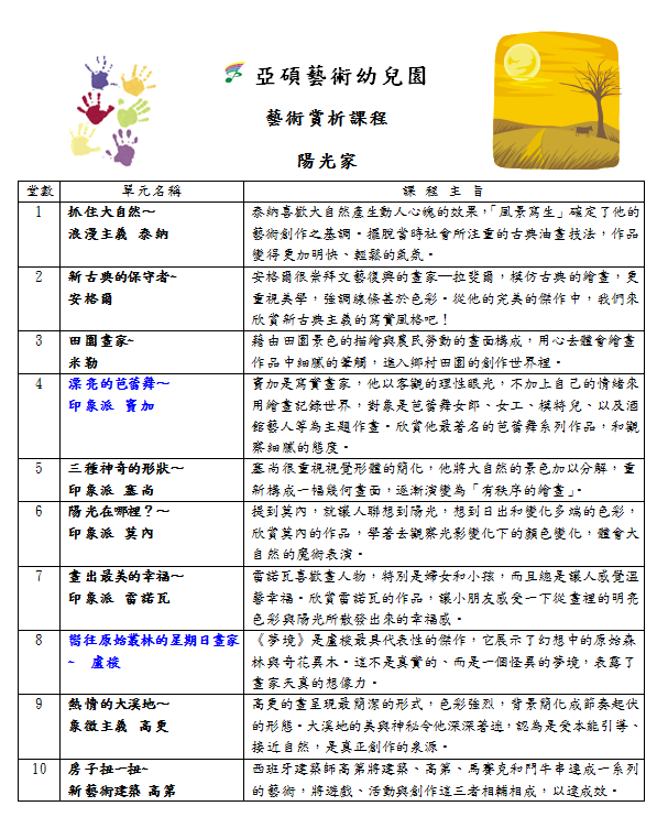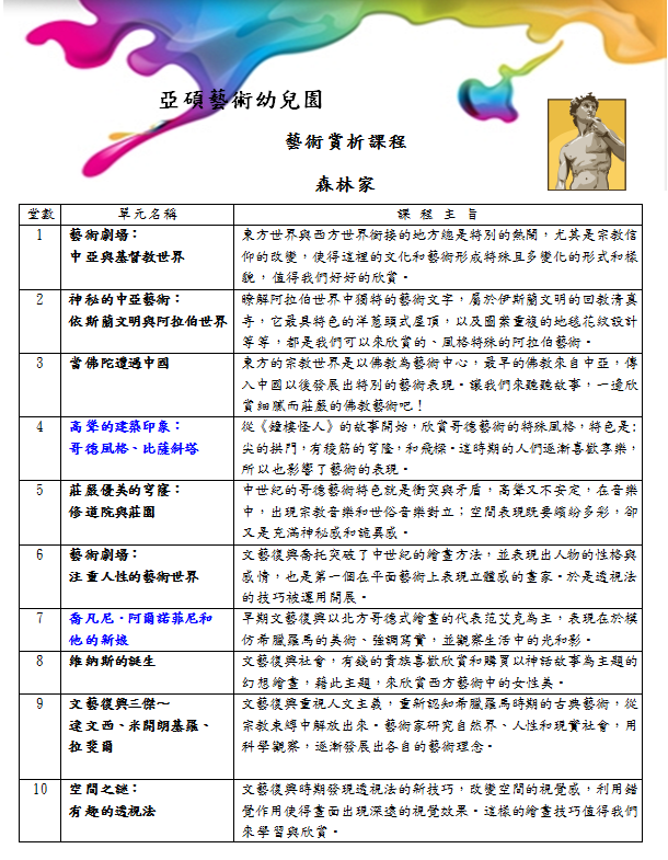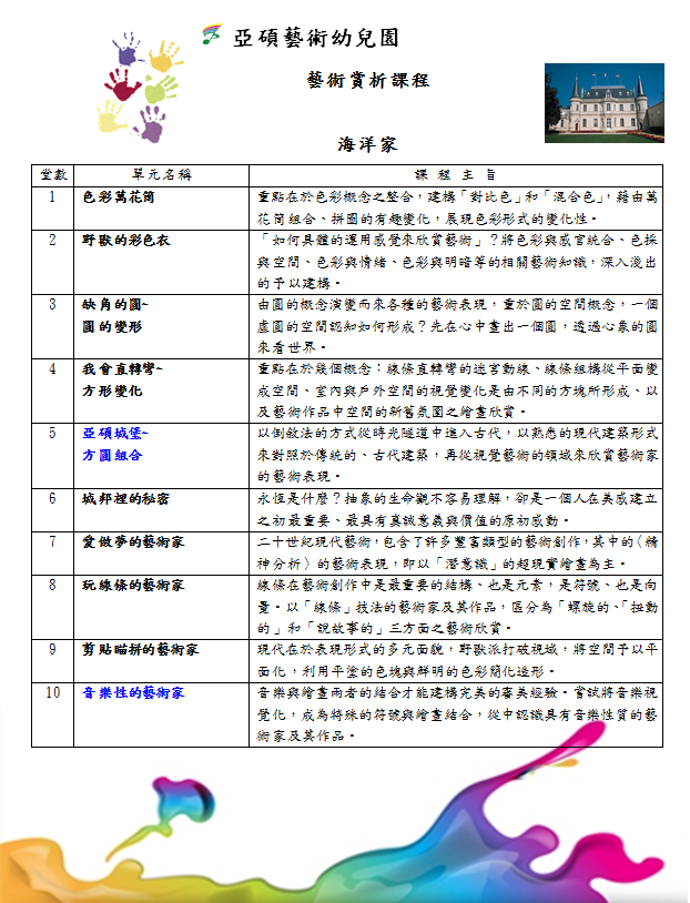 亞碩幼兒園平鎮校-幼兒藝術賞析課程